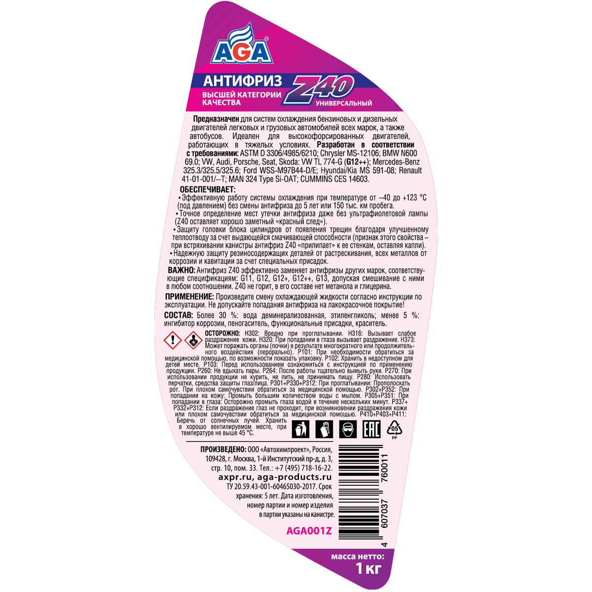 Автомобильные антифризы AGA производятся и продаются в России более 20 лет. Их качество проверено на практике и подтверждено положительными отзывами автолюбителей по всей стране, а также независимой экспертизой Росстандарта.