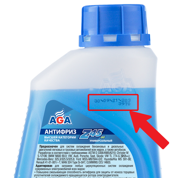Универсальные антифризы AGA совместимы со всеми охлаждающими жидкостями на основе этиленгликоля, соответствующими спецификациям G11, G12, G12+, G12++, G13. Это свойство пригодится в экстренной ситуации, когда необходимо срочно восполнить объем охлаждающей жидкости в системе охлаждения и предупредить перегрев двигателя.
