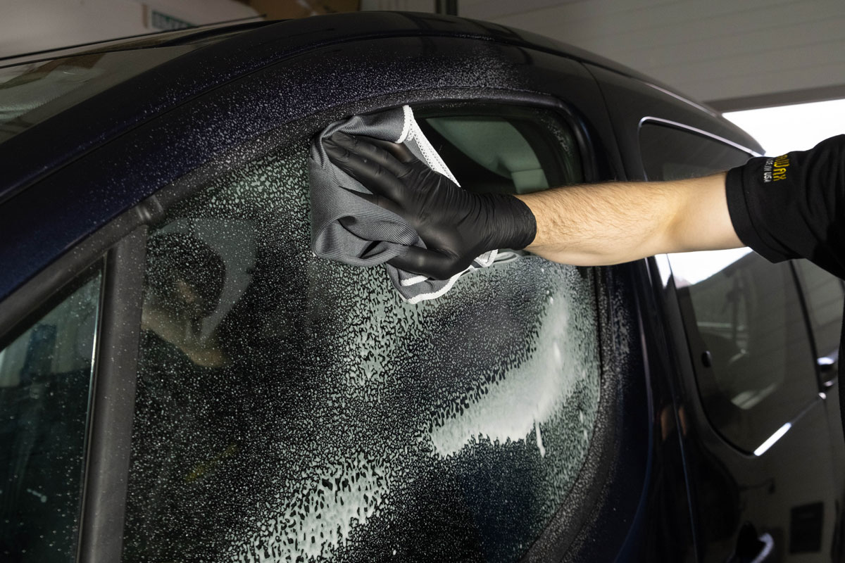 После нанесения состава протрите поверхность Микрофиброй для стекол, зеркал и интерьера DoctorWax DW9912S. Мягкая ткань не царапает поверхность, хорошо удерживает загрязнения и не оставляет после себя разводов и следов ворса.